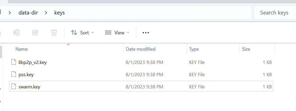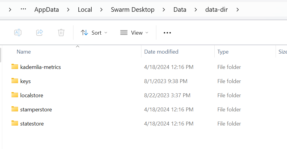 Navigate to the directory you just copied and create copies of all the files in that directory (\data-dir), including localstore, statestore, stamperstore, kademlia-metrics and keys folders and store them in a secure and private location.