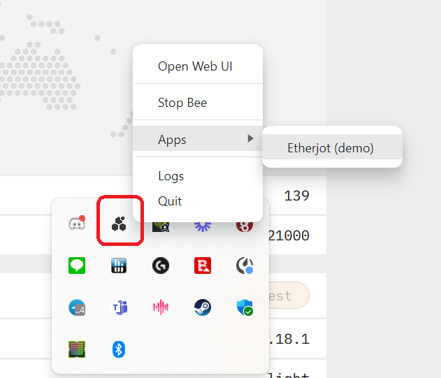 To open Etherjot, right click the Swarm Desktop icon in your dashboard and navigate to "Apps", and then click on "Etherjot".