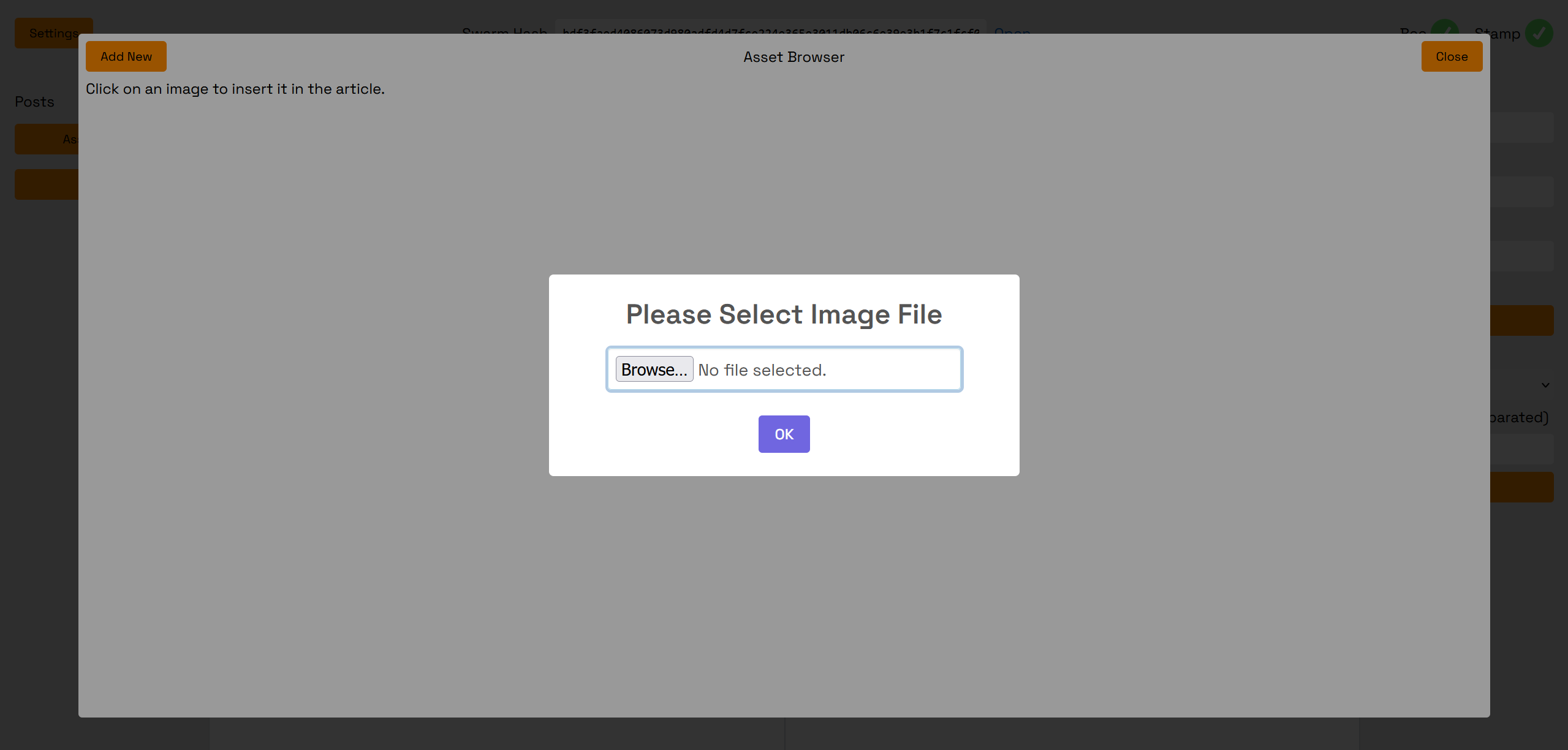 This will open up the Asset Browser where you can manage your blog assets such as images.